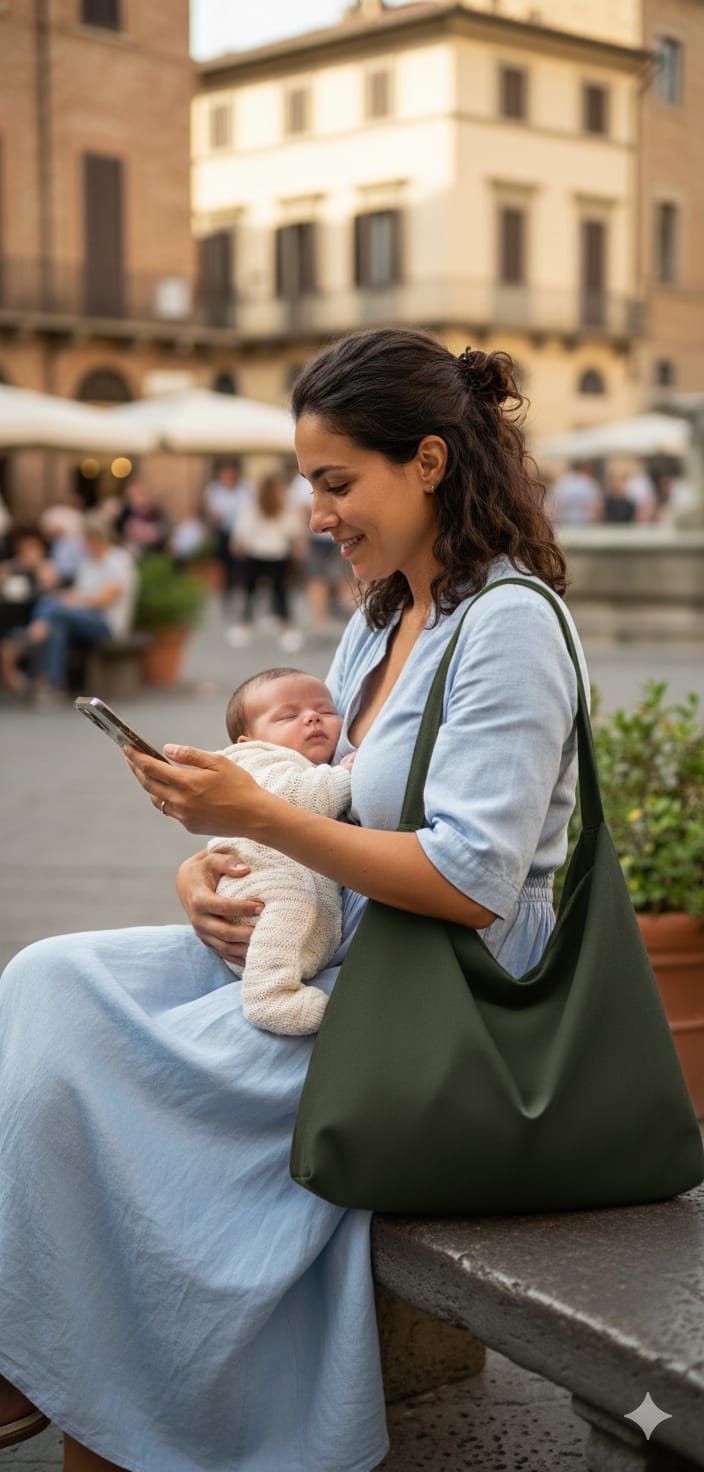 Il modello a tracolla offre massima libertà di movimento e mantiene le mani libere, rendendola ideale per chi si sposta in città, in bici o nei mezzi pubblici.